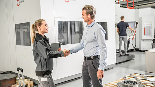 - In addition to demonstration of the machine, we offer comprehensive guided tours through the entire production and assembly facilities. At the same time, you can experience HERMLE's high level of vertical integration and quality philosophy first-hand.